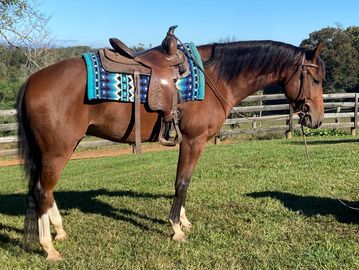 4 year old registered Quarter Horse gelding. He stands 14.3 hands. He has been shown at many open shows, ranch, western,and hunt seat and handles it well. He is great on all the basics ( hauls, bathes, stands tied, stands for farrier, bare footed but had sliders on back. Bishop is very talented and could go in any direction.